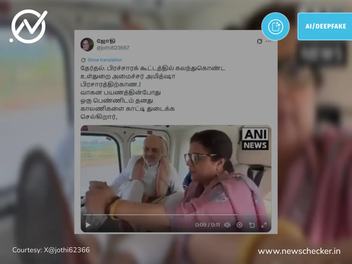 அமித் ஷாவின் காலணிகளை ஊடகவியலாளர் நவிகா குமார் துடைத்ததாக பரவும் வீடியோ AI மூலமாக எடிட் செய்யப்பட்டதாகும்.