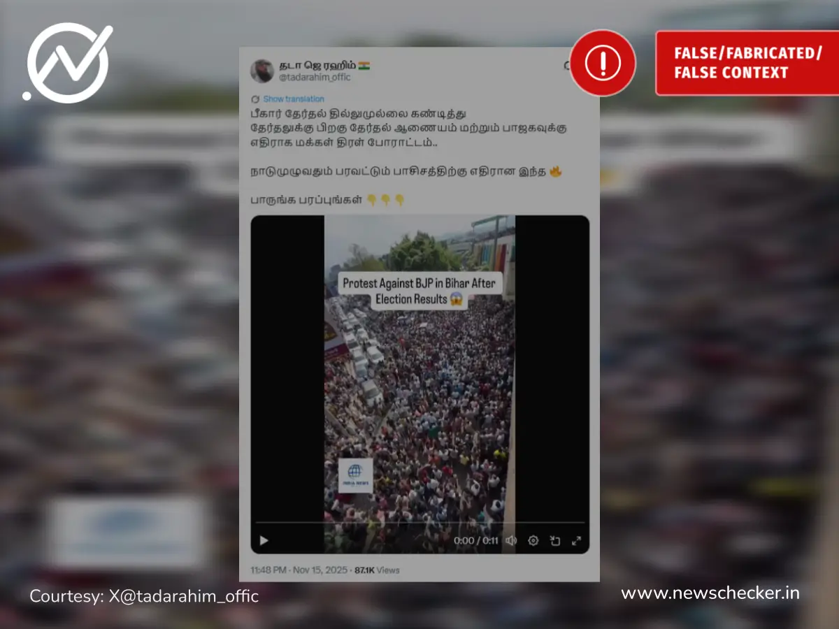 பீகார் தேர்தல் முடிவுக்கு பாஜகவை எதிர்த்து மக்கள் திரண்டதாக பரவும் வீடியோ தவறானதாகும்.