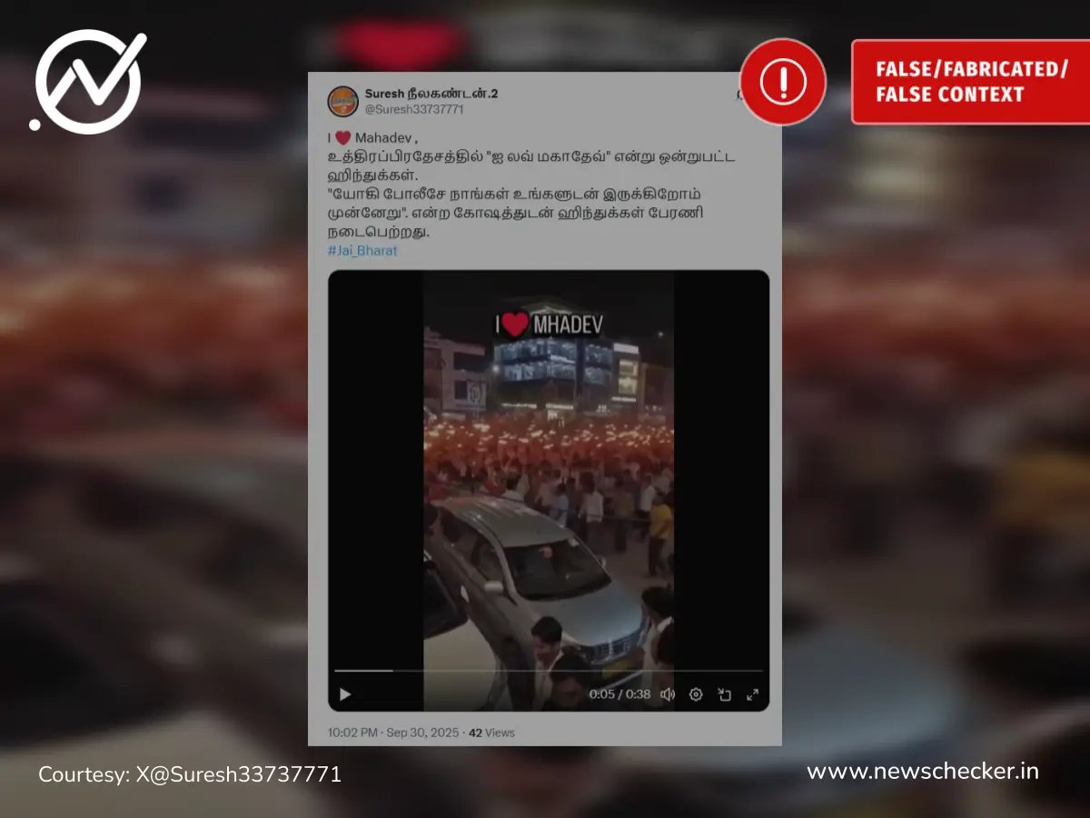 உத்திரப் பிரதேசத்தில் அரசுக்கு ஆதரவாக ஐ லவ் மகாதேவ் எனும் பெயரில் பேரணி நடந்ததாக பரவும் வீடியோ தவறானதாகும்.