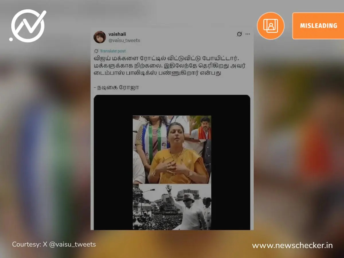 தவெக தலைவர் விஜய் மக்களை நடுத்தெருவில் நிறுத்திச் சென்றதாக பேசினாரா நடிகை ரோஜா செல்வமணி?