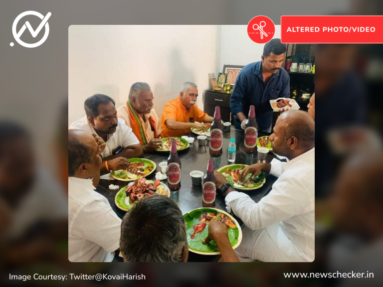 பாஜக நிர்வாகிகள் மது அருந்தியதாக வைரலாகும் புகைப்படம் எடிட் செய்யப்பட்டதாகும்.