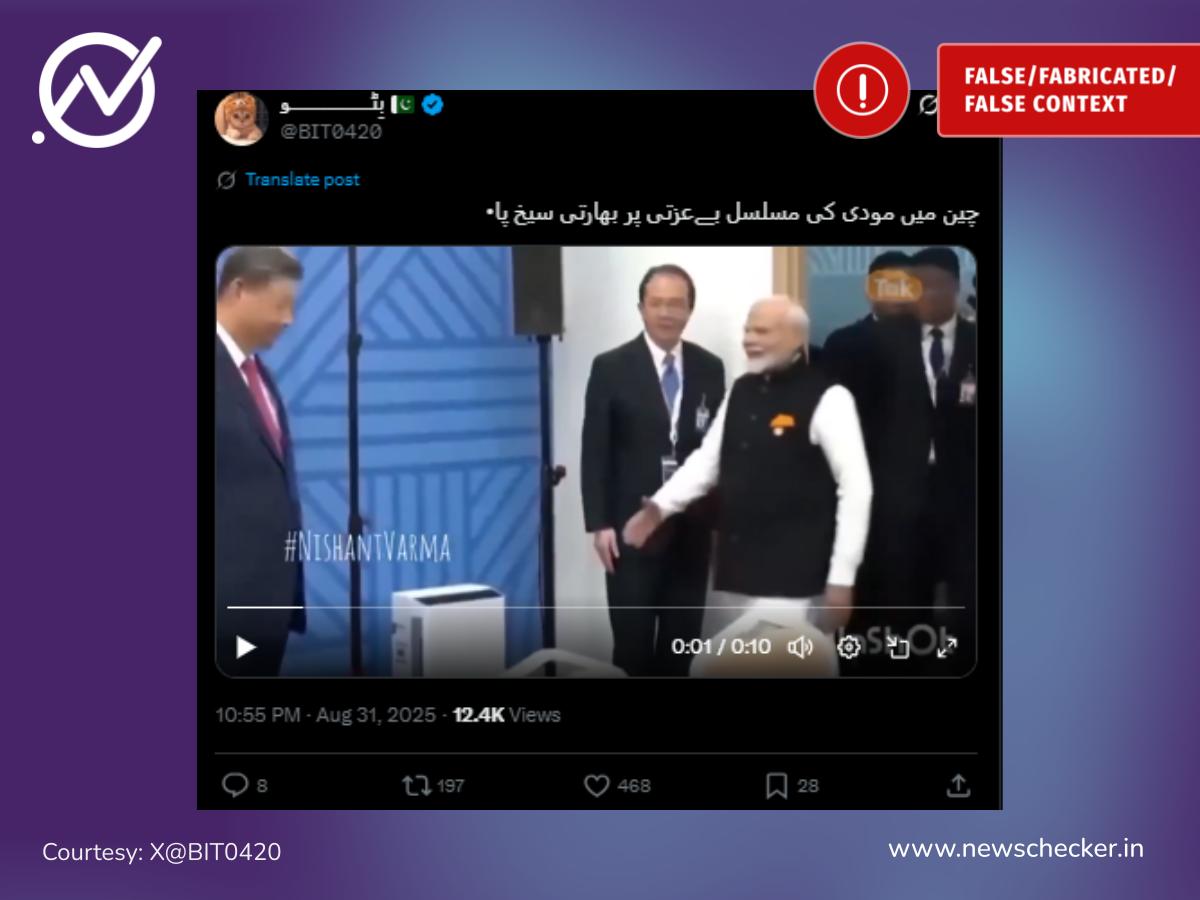 اس ہفتے سوشل میڈیا پر وزیر اعظم نریندر مودی کی چینی صدر شی جن پنگ کی ملاقات کی پرانی ویڈیو کو حالیہ شنگھائی تعاون تنظیم میں شامل ہونے کا بتاکر شیئر کیا گیا ہے۔ اس کے علاوہ پاکستان سیلاب و دیگر موضوع پر 5 مختصر فیکٹ چیک یہاں پڑھیں۔