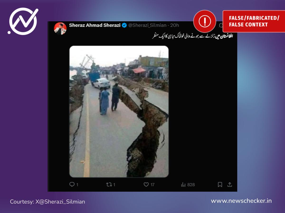 صارفین کی جانب سے یہ دعویٰ کیا جا رہا ہے کہ تباہ شدہ سڑک کی یہ تصویر افغانستان میں آنے والے حالیہ زلزلے کی ہے، لیکن دراصل یہ منظر 2019 میں میرپور میں آئے زلزلے کے بعد کا ہے، جسے گمراہ کن دعوے کے ساتھ موجودہ سانحے سے جوڑ کر شیئر کیا جا رہا ہے۔ مکمل فیکٹ چیک یہاں پڑھیں۔