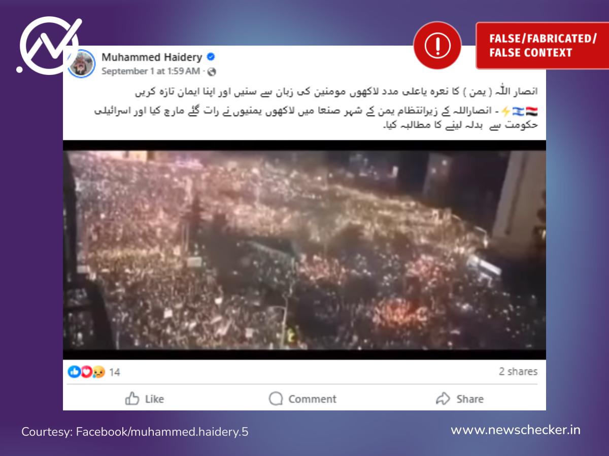 سوشل میڈیا پر گردش کرنے والی اس ویڈیو کے بارے میں یہ دعویٰ کیا گیا کہ یہ یمن کے دارالحکومت صنعا میں اسرائیل مخالف ریلی کا منظر ہے، تاہم حقیقت اس کے برعکس ہے۔ تحقیق سے واضح ہوا کہ ویڈیو کا تعلق صنعا یا کسی اسرائیل مخالف مظاہرے سے نہیں بلکہ سربیا کے دارالحکومت بلغراد سے ہے، جہاں مقامی شہری بدعنوانی اور حکومتی پالیسیوں کے خلاف سڑکوں پر نکلے تھے۔ مکمل تحقیقات یہاں پڑھیں۔