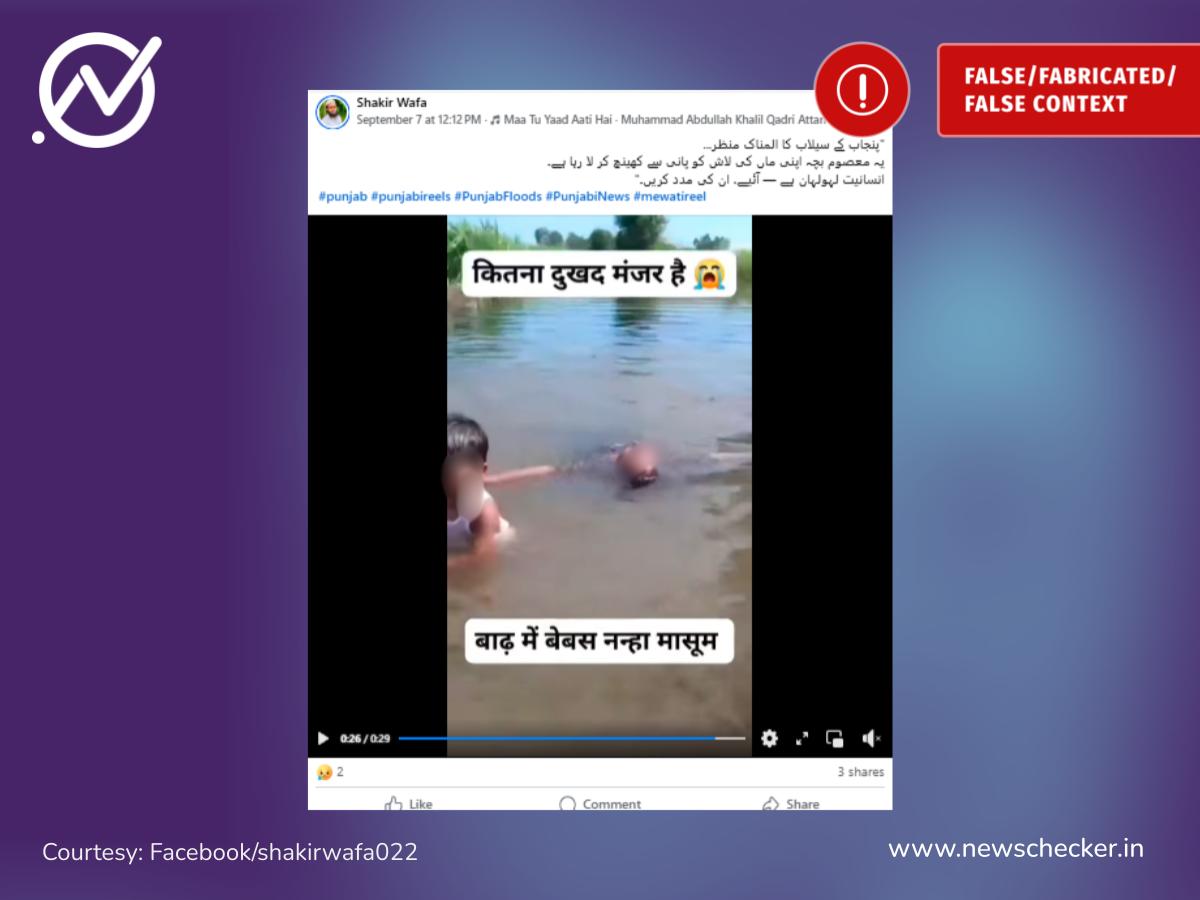 سوشل میڈیا پر وائرل ہونے والی ویڈیو کے بارے میں دعویٰ کیا گیا کہ یہ پنجاب کے سیلاب کی ہے، جس میں ایک بچہ اپنی ماں کی لاش کو پانی سے نکالتا دکھائی دے رہا ہے۔ لیکن پڑتال سے واضح ہوا کہ یہ دعویٰ درست نہیں۔ حقیقت یہ ہے کہ ویڈیو کسی حقیقی سانحے کی نہیں بلکہ ایک اسکرپٹیڈ ویڈیو ہے، جسے پنجاب کے سیلاب سے جوڑ کر گمراہ کن انداز میں شیئر کیا گیا۔ پوری تحقیقات یہاں پڑھیں۔