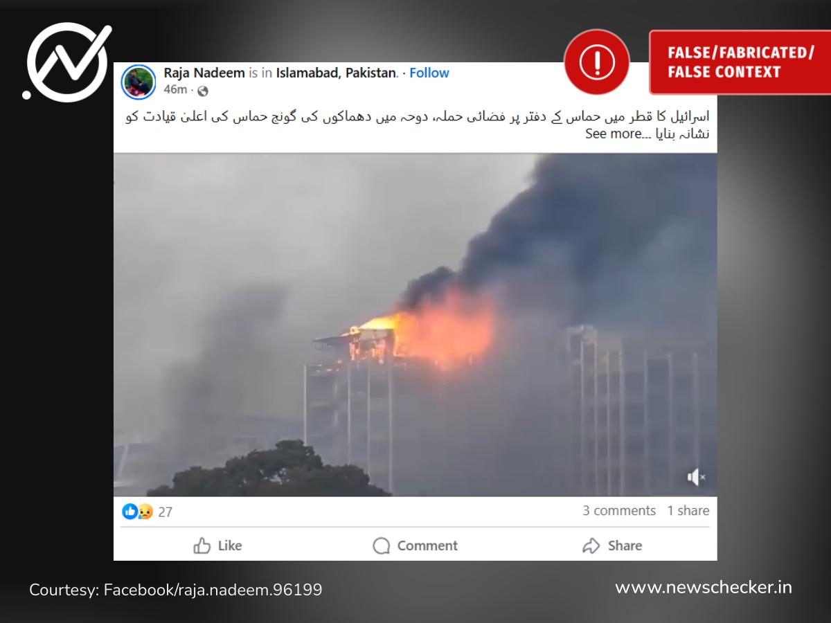 سوشل میڈیا پر یہ دعویٰ کیا گیا کہ وائرل ویڈیو قطر کے دارالحکومت دوحہ کی ہے، جہاں مبینہ طور پر اسرائیلی فضائی حملے کے بعد حماس کے دفتر کو نشانہ بنایا گیا۔ تاہم، یہ دعویٰ درست نہیں ہے۔ جانچ سے پتہ چلا کہ ویڈیو کا قطر یا اسرائیلی حملے سے کوئی تعلق نہیں بلکہ یہ مناظر نیپال کے دارالحکومت کٹھمنڈو کے ہیں، جہاں حالیہ جین زی مظاہروں کے دوران مشتعل ہجوم نے کانتی پور ٹی وی کے ہیڈکوارٹر کو آگ لگا دی تھی۔ یہاں پڑھیں پوری تحقیقات۔