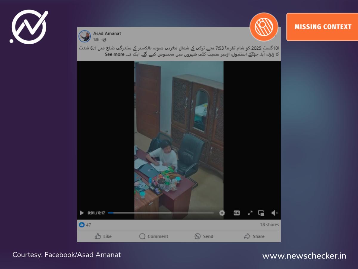 ترکی میں10 اگست کی شام زلزلے کے جھٹکے محسوس کئے گئے۔ جس کے بعد ایک خاتون کی ویڈیو شیئر کی گئی اور دعویٰ کیا گیا کہ یہ منظر مغربی ترکیہ میں آئے حالیہ زلزلے کا ہے۔ تحقیقات سے معلوم ہوا کہ ویڈیو پرانی ہے۔ یہاں پوری تحقیقات۔