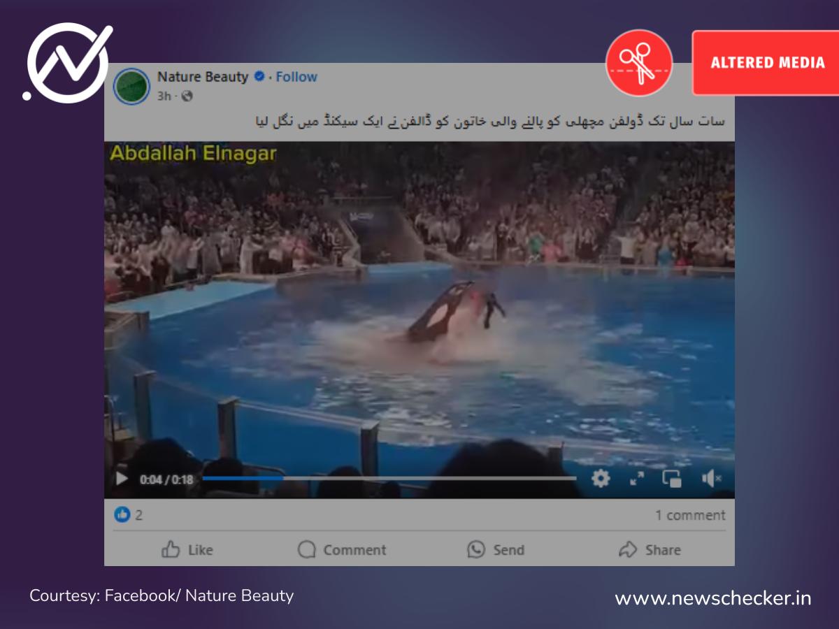 ڈولفن کے ایک خاتون کو نگلنے کی ایک ویڈیو کے ساتھ دعویٰ کیا گیا کہ اپنے ٹرینر کو ڈولفن نے شو کے دوران مار ڈالا۔ ہم نے اس کی تحقیقات کی تو معلوم ہوا کہ ویڈیو مصنوعی ذہانت کی مدد سے تیار کیا گیا ہے۔ پورین تحقیقات پڑھنے کے لئے یہاں کلک کری۔
