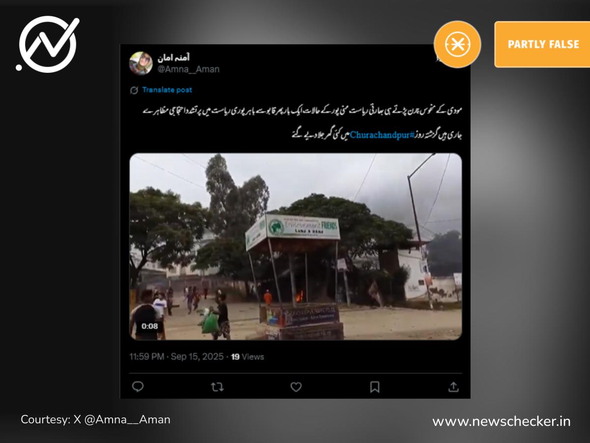 آن لائن گردش کرنے والی ایک ویڈیو کے ساتھ یہ دعویٰ کیا گیا کہ یہ منی پور کے چوراچندپور ضلع کی ہے، جہاں پی ایم مودی کے حالیہ دورے کے موقع پر حالات کشیدہ ہوئے اور مشتعل ہجوم نے کئی گھروں کو نذرِ آتش کر دیا۔ لیکن ہماری تحقیقات سے معلوم ہوا کہ ویڈیو پرانی ہے۔ مکمل تحقیقات پڑھنے کےلئے یہاں کلک کریں۔