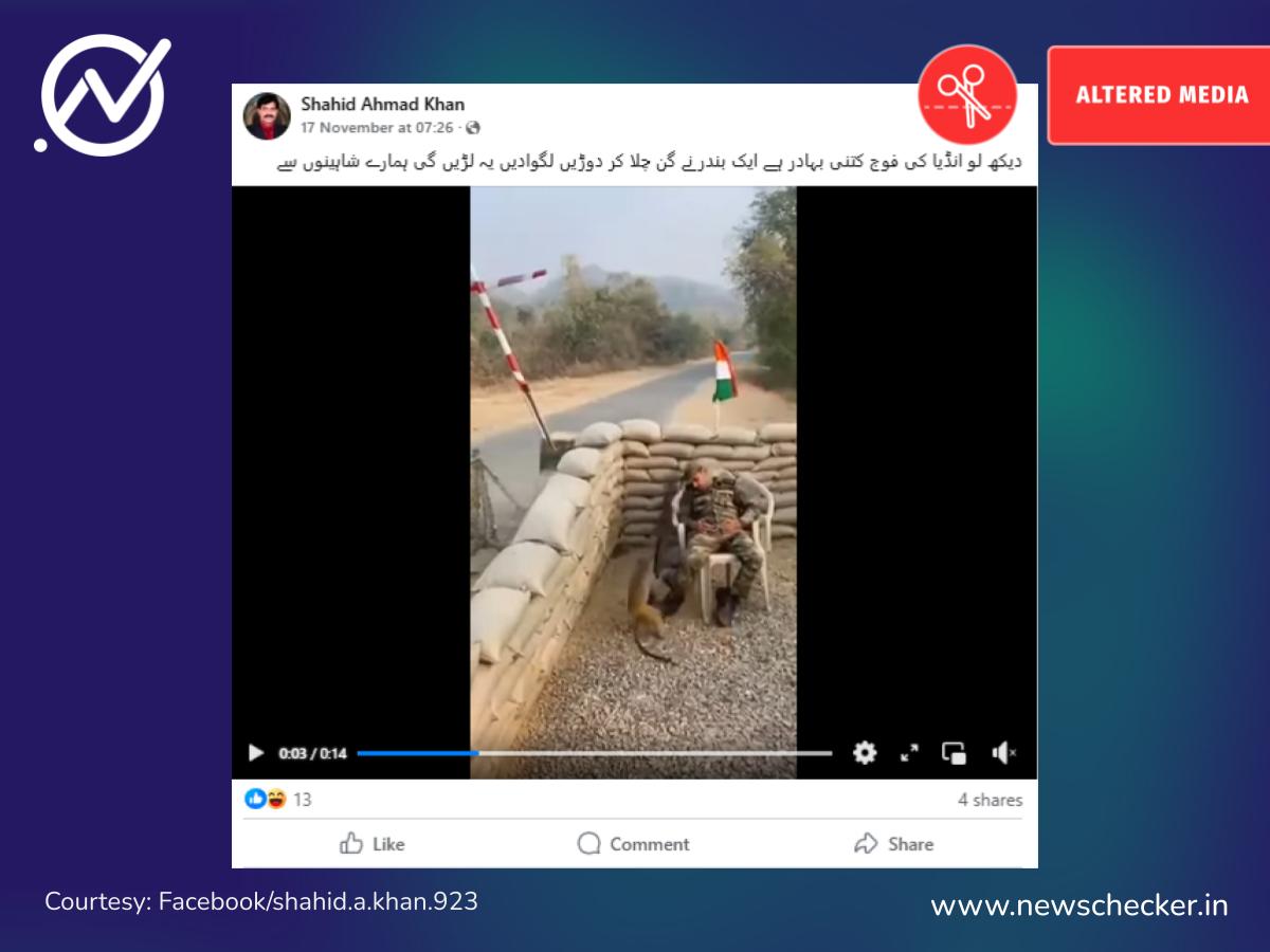 سوشل میڈیا پر ایک ویڈیو کے ساتھ یہ دعویٰ کیا گیا کہ ایک بندر بندوق چلاتا ہے اور بھارتی فوجی خوفزدہ ہو کر بھاگ جاتا ہے، مگر حقیقت یہ ہے کہ یہ منظر اصل نہیں بلکہ اے آئی کی مدد سے تیار کیا گیا گمراہ کن ویڈیو ہے۔ مکمل فیکٹ چیک یہاں پڑھیں۔