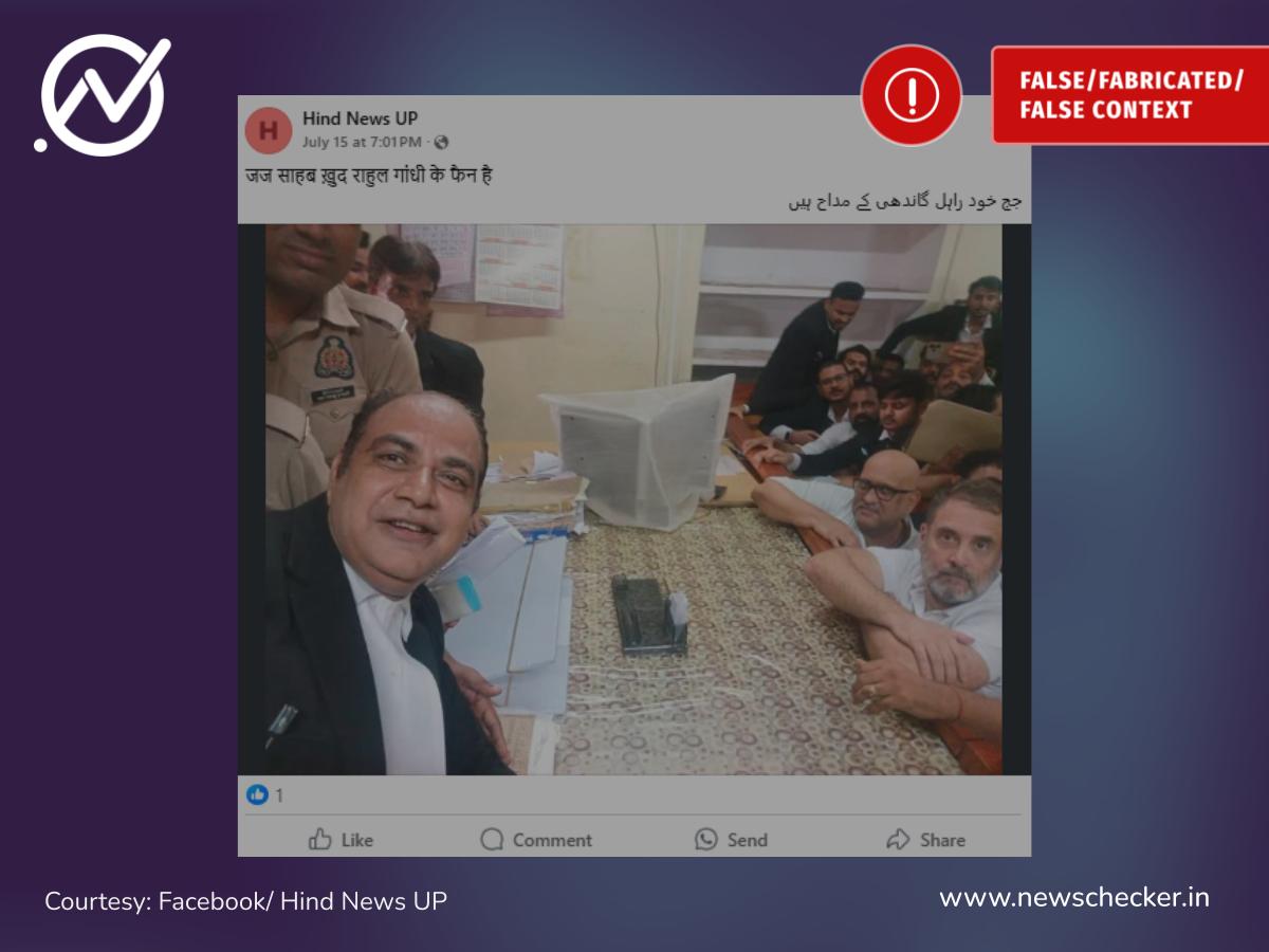 سوشل میڈیا پر کانگریس لیڈر راہل گاندھی کی ایک تصویر کے ساتھ دعویٰ کیا گیا کہ عدالت میں پیشی کے دوران جج نے ان کے ساتھ سیلفی لی۔ لیکن ہماری تحقیقات میں دعویٰ بے بنیاد ثابت ہوا۔ دراصل راہل گاندھی کے ساتھ سیلفی لینے والا شخص جج نہیں بلکہ وکیل ہے۔ پورا فیکٹ چیک یہاں پڑھوں۔