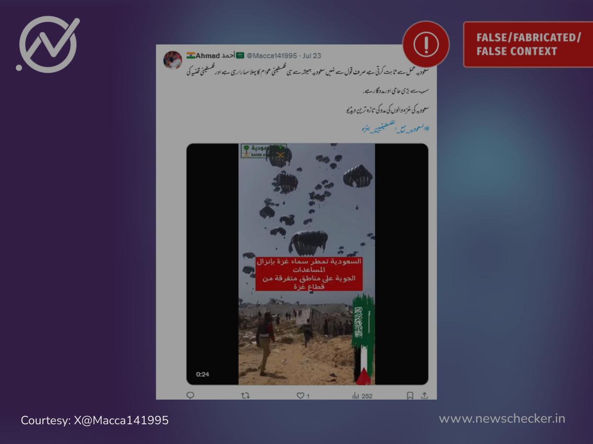آسمان سے زمین پر اتر رہے پیراشوٹس کی ایک ویڈیو کے ساتھ دعویٰ کیا گیا کہ یہ سعودی کی جانب سے غزہ کو بھیجی گئی مدد کا تازہ ترین ویڈیو ہے۔ لیکن ہماری تحقیقات سے معلوم ہوا ویڈیو پرانی ہے اور امریکہ سے غزہ کو بھیجی گئی مدد کی ہے۔ یہاں پڑھیں پورا فیکٹ چیک۔