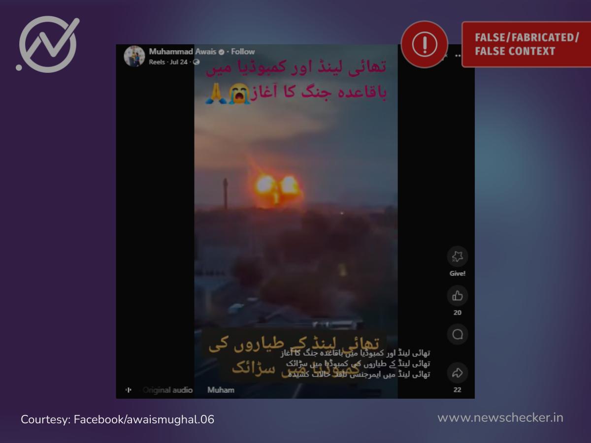 حالیہ دنوں تھائی لینڈ اور کمبوڈیا کے مابین سرحدی جھڑپیں جاری ہیں۔ اسی معاملے سے منسوب کرکے حملے کی ویڈیو شیئر کی گئی اور دعویٰ کیا گیا کہ یہ منظر تھائی لینڈ کی جانب سے کمبوڈیا پر کئے گئے فضائی حملے کا ہے۔ لیکن تحقیقات سے معلوم ہوا یہ روس کی جانب سے یوکرین پر کئے گئے حملے کی ہے۔ پوری حقیقت یہاں پڑھیں۔