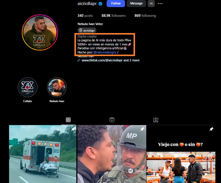 مزید تلاش پر ہمیں اے آئی کریولا پی آر نامی انسٹاگرام اور فیس بک پیجز ملے، جن پر بالکل اسی طرز کی اے آئی سے تیار کردہ کئی ویڈیوز شیئر شدہ ملیں۔ مذکورہ وائرل ویڈیو کا اصل ورژن بھی 3 نومبر کو انسٹاگرام پر اور 7 نومبر کو فیس بک پر شیئر کیا گیا تھا۔