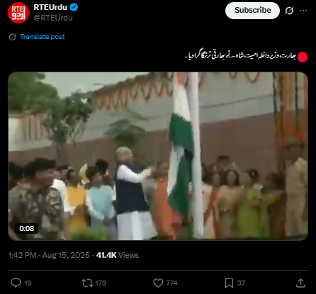 سوشل میڈیا پر ایک ویڈیو خوب گردش کر رہی ہے جس میں بھارتی وزیر داخلہ امت شاہ کو ویڈیو میں دیکھا جا سکتا ہے کہ جب وہ پرچم کشائی کے دوران اس کی رسی کھینچتے ہیں تو اُس وقت ترنگا نچلی سطح پر آ جاتا ہے، مگر وہ فوراً ہی رسی ٹھیک کرتے ہوئے بھارتی پرچم کو مکمل طور پر لہرا تے ہیں۔ صارفین کا دعویٰ ہے کہ 15 اگست 2025 کو وزیر داخلہ امت شاہ نے بھارتی پرچم لہرانے کے بجائے اس کی بے حرمتی کر دی۔