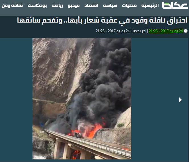ویڈیو پرانی ہے اور أبھا کے عقبہ شعار میں تیل ٹینکر میں لگنے والی آگ کی ہے۔