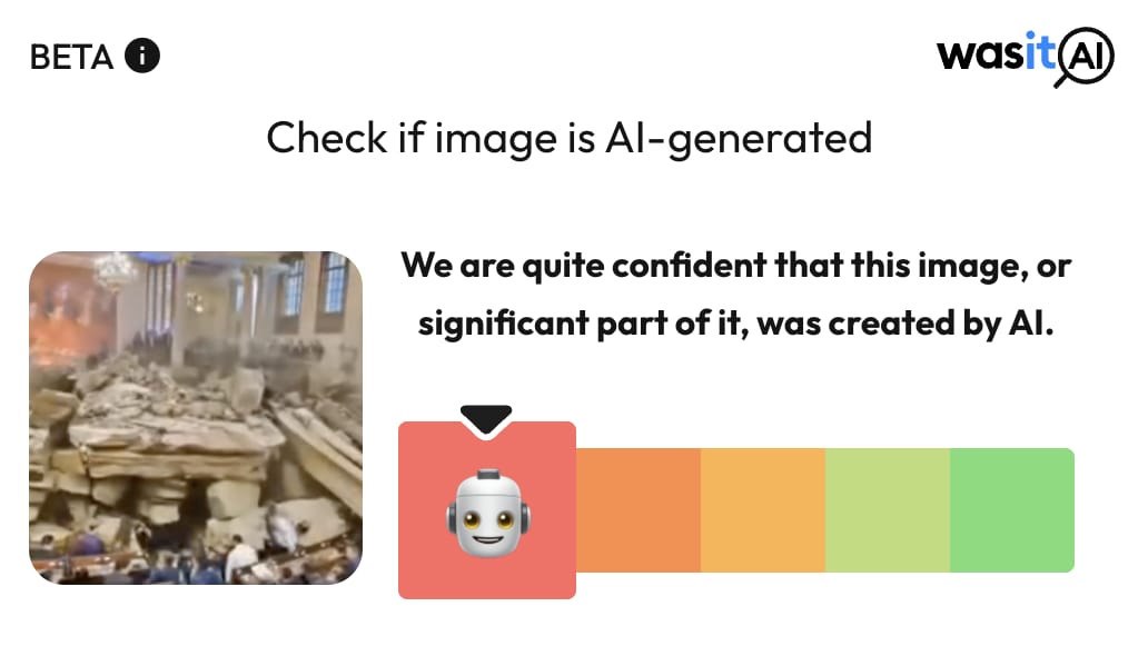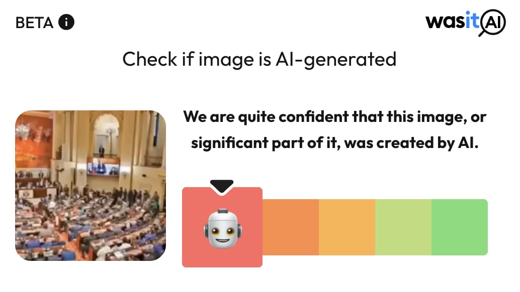 لہٰذا نیوز چیکر کی تحقیقات میں ثابت ہوا کہ اے آئی ویڈیو کو کولمبیائی پارلیامانی عمارت کے زمین دوز ہونے کا بتاکر شیئر کیا گیا ہے۔