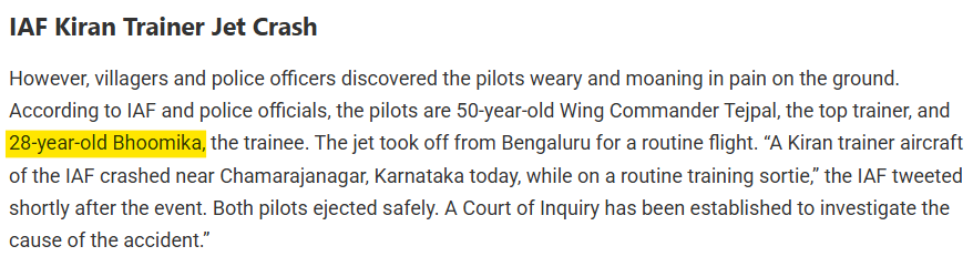 پھر ہم نے گوگل پر “چامراجا نگر، کرن جیٹ ٹرینرایئر کرافٹ کریش” کیورڈ تلاش کیا۔ اس دوران ہمیں 2 جون 2023 کو شائع ہونے والی ایس ایس بی کریک ایگزام نامی ویب سائٹ پر مذکورہ خاتون کی تصویر کے ساتھ شائع ایک رپورٹ موصول ہوئی۔ اس رپورٹ میں پائلٹ خاتون کا نام 28 سالہ بھومیکا بتایا گیا ہے جو ٹریننگ کے دوران کرناٹک کے چامراجا نگر کے ایچ موکلی میں زخمی ہوگئی تھیں۔
