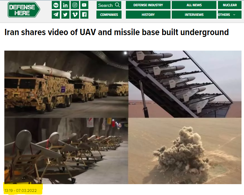 ڈیفنس ہیئر نامی ویب سائٹ کے مطابق ایرانی ریوولیوشنری گارڈز نے عوام کے ساتھ اپنے اڈوں کی تصاویر شیئر کی تھیں، جہاں زیرزمین میزائل و بغیر انسانوں کے چلنے والی ہوائی گاڑیاں موجود تھیں۔