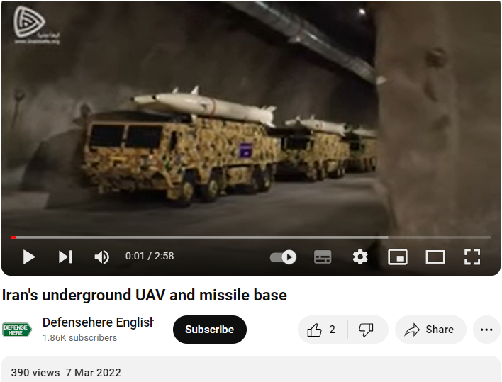 مزید سرچ کے دوران ہمیں یہی ویڈیو ڈیفینس ہیئر انگلش نامی یوٹیوب چینل پر 7 مارچ 2022 کو اپلوڈ شدہ ملی۔ جس کے عنوان کے مطابق ہتھیاروں کی یہ ویڈیو ایران کے زیر زمین یو اے وی اور میزائل بیس کی ہے۔ جس سے معلوم ہوا کہ ویڈیو کا اسرائیل پر ایران کے حالیہ حملے سے کوئی تعلق نہیں ہے۔
