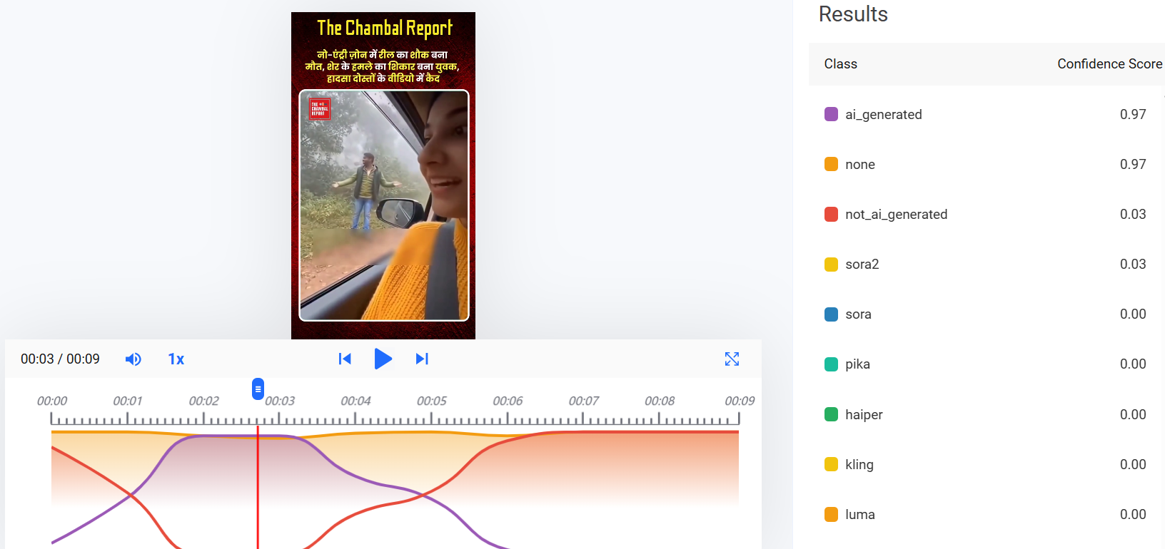 اس سے ہمیں شبہ ہوا کہ یہ ویڈیو ایڈیٹڈ یا پھر اے آئی سے تیار کردہ ہو سکتی ہے۔ اسی بنا پر ہم نے مس انفارمیشن کومبیٹ الائنس (ایم سی اے)، جو اب ٹرسٹڈ انفارمیشن الائنس کہلاتا ہے، کی ڈیپ فیک اینالیسس یونٹ (ڈی اے یو) کی مدد لی، جس کا نیوزچیکر بھی حصہ ہے۔ ڈی اے یو نے وائرل ویڈیو اور اس کے کیفریمز کو کئی اے آئی ٹولز کے ذریعے تصدیق کی۔