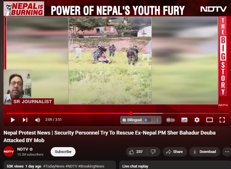 پہلا کلپ 2022 سے انٹرنیٹ پر موجود ہے، جبکہ دوسرا حصہ نیپال کے سابق وزیر اعظم شیر بہادر دیوبا پر مظاہرین کے حملے کا ہے۔