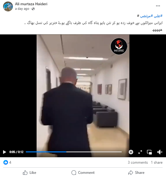 Fact Check: ایران کے تل ابیب پر حالیہ حملے کے دوران نیتن یاہو کے پناہ گاہ میں چھپنے کی نہیں ہے یہ ویڈیو