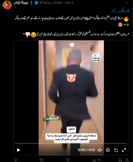 یہ ویڈیو ایران کے تل ابیب پر حالیہ حملے کے بعد اسرائیلی وزیر اعظم نیتن یاہو کے بنکر میں پناہ لینے کے لئے دوڑ کر جانے کی ہے۔