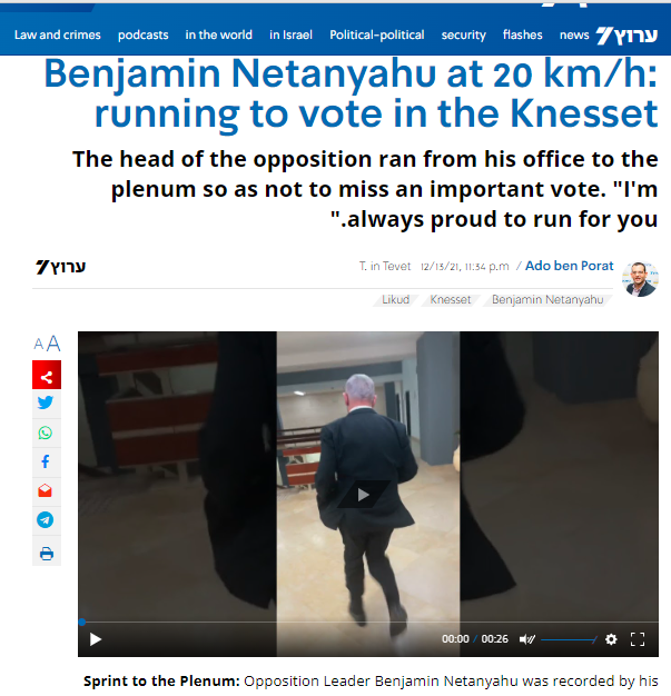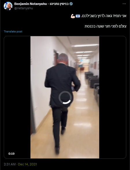 اسرائیلی وزیر اعظم نیتن یاہو کی یہ ویڈیو 2021 میں نیسیٹ عمارت کے اندر دوڑ کر جانے کی ہے۔