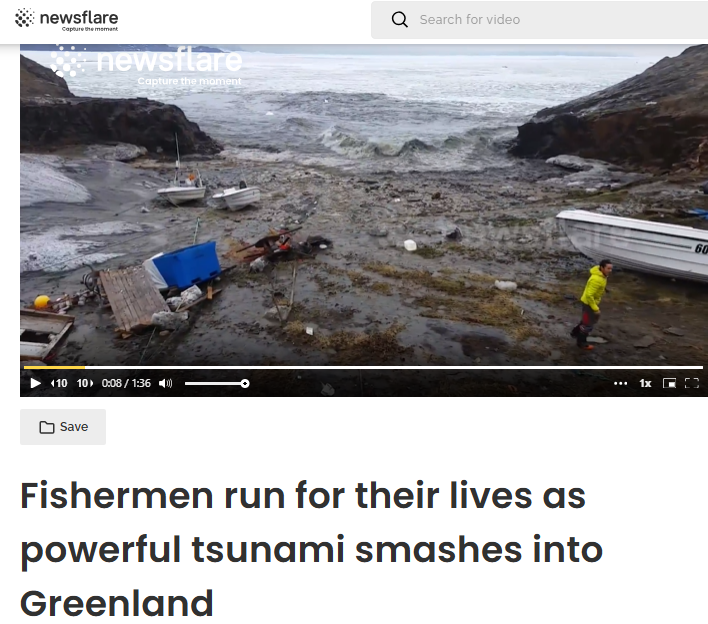 اس کے علاوہ ہمیں ہوبہو ویڈیو نیوز فلئیر نامی ویب سائٹ پر موصول ہوئی۔ جس کے مطابق یہ ویڈیو گرین لینڈ میں آنے والی سونامی کی ہے۔ جہاں ماہی گیر اپنی جان بچاکر بھاگ رہے ہیں۔ البتہ اس ویب سائٹ پر ویڈیو کب کی ہے اس کا ذکر نہیں کیا گیا ہے۔