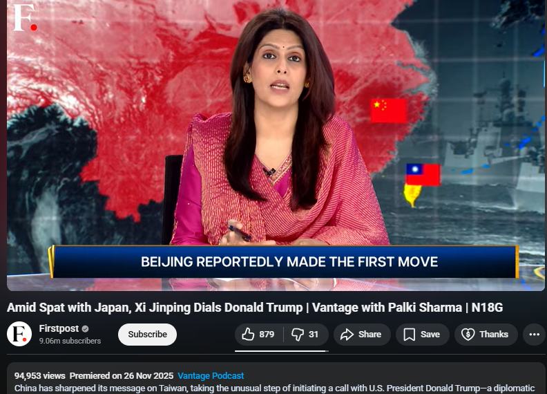 ہم نے وائرل ویڈیو کو اویسی کے اسکرین شاٹس کی مدد سے کیفریمز میں تقسیم کیا۔ اس کے بعد سب سے پہلے خاتون اینکر اور اسدالدین اویسی پر مشتمل فریمز کو گوگل لینس اور ین ڈیکس ٹولز کے ذریعے تلاش کیا۔ اس دوران ہمیں فرسٹ پوسٹ کے آفیشل یوٹیوب چینل پر 26 نومبر 2025 کو اپلوڈ کی گئی ایک ویڈیو رپورٹ ملی، جس میں خاتون اینکر پالکی شرما اپادھیا ہوبہو اسی لباس میں نظر آتی ہیں۔