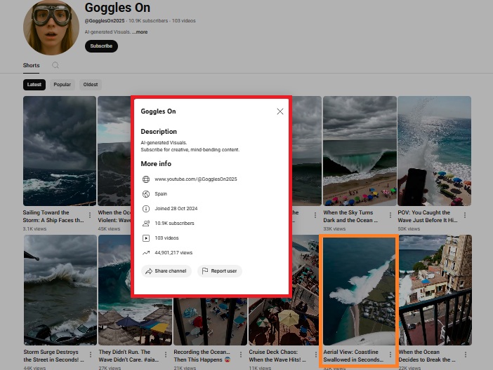 اس چینل کا تجزیہ کرنے پر ہم نے پایا کہ اس پر ایسی ہی متعدد ویڈیوز موجود ہیں اور چینل کے ڈسکرپشن میں واضح لکھا ہے کہ اس میں موجود مواد اے آئی سے تیار کردہ ہیں۔