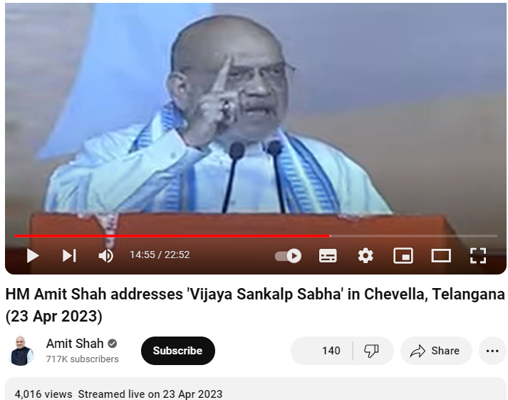 Amit Shah YouTube Channel Video, Dated April 23, 2023