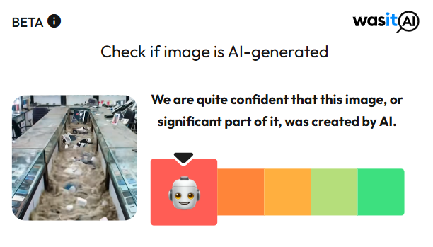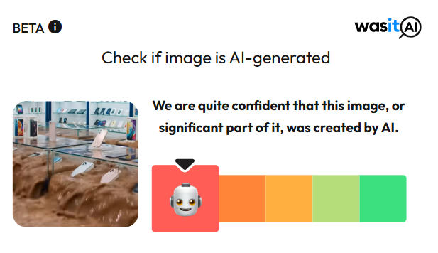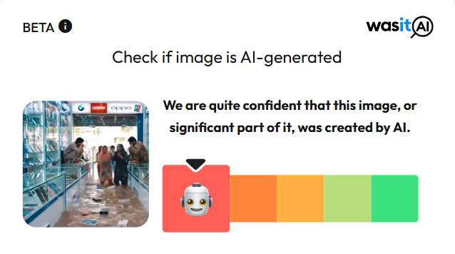 مزید تصدیق کے لئے ہم نے ویڈیو کے چند فریمز کا اے آئی کا پتا لگانے والے ٹولز واز اٹ اے آئی اور سائٹ انجن کی مدد سے تجزیہ کیا۔ واز اٹ اے آئی نے اپنے تجزیے میں تصاویر یا اس کے خاص حصے کو مصنوعی ذہانت کی مدد سے تیار کردہ بتایا ہے۔