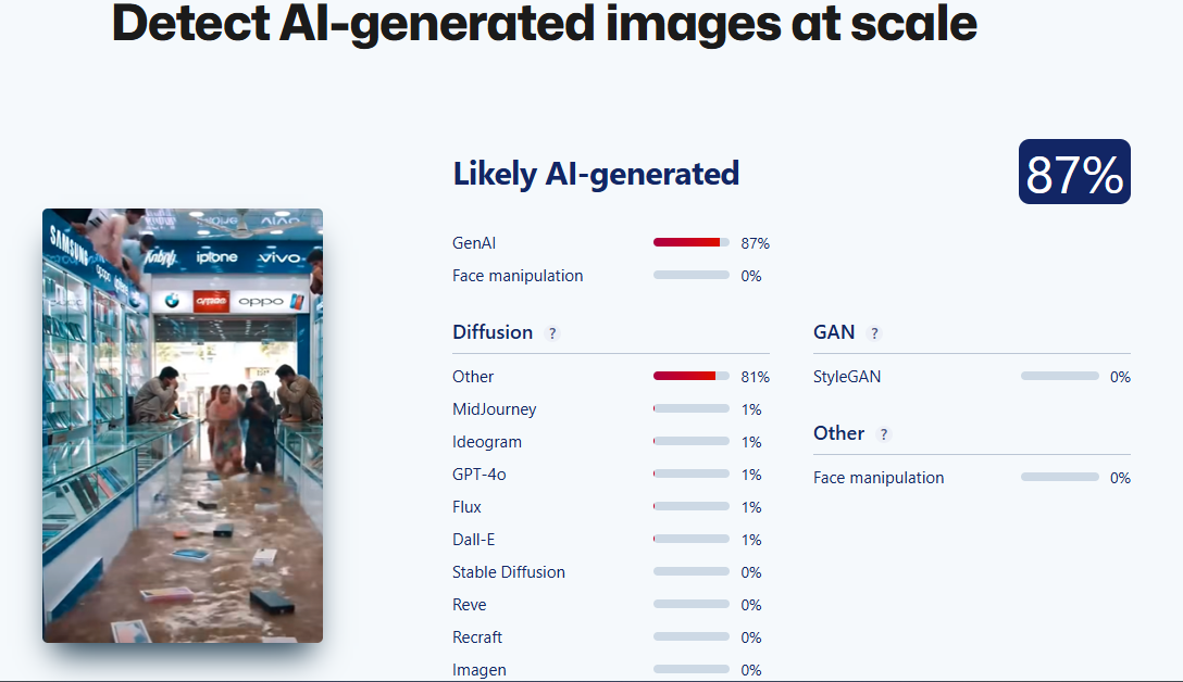 لہٰذا نیوز چیکر کی تحقیقات سے یہ ثابت ہوا کہ پاکستان کے سیالکوٹ موبائل مارکیٹ میں سیلابی ریلے کا بتاکر شیئر کی گئی ویڈیو دراصل اے آئی کی مدد سے تیار کی گئی ہے۔