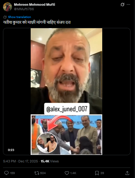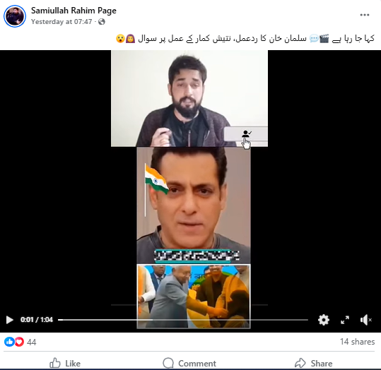 سوشل میڈیا پر اداکار شاہ رخ، سلمان اور سنجے دت کی ویڈیوز بہار کے وزیر اعلیٰ نتیش کمار کے مسلمان خاتون ڈاکٹر کا حجاب کھینچنے والے واقعے سے جوڑ کر شیئر کی جا رہی ہیں۔ ان ویڈیوز کو تینوں اداکاروں کے بیانات یا ردعمل کے طور پر پیش کیا جا رہا ہے تاکہ عوام میں یہ تاثر پھیلایا جا سکے کہ انہوں نے حجاب معاملے پر نتیش کمار کی تنقید کی ہے۔