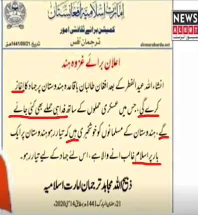 واہٹس ایپ پر ہمارے ایک قاری نے ایک ویڈیو رپورٹ کو تحقیقات کے لئے بھیجا ہے۔ ویڈیو رپورٹ میں دعویٰ کیا گیا ہے کہ افغان طالبان نے ہندوستان سے جہاد کا اعلان کیا ہے۔ اس حوالے سے افغان طالبان نے خط جاری کرتے ہوئے عنوان میں لکھا ہے کہ ‘اعلان برائے غزوہ ہند’ عید الفطر کے بعد افغان طالبان بھارت پر فدائی حملے اور جہاد کرے گا اور بھارت کے مسلمانوں کو غزوہ ہند کےلئے تیار رہنے کو بھی کہا ہے۔