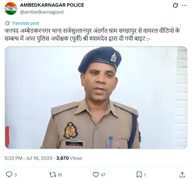 اس کے علاوہ امبیڈکر نگر پولس کے آفیشل ایکس ہینڈل پر بھی ہمیں ایڈیشنل سپرنٹنڈنٹ آف پولس (ایسٹ) شری شیام دیو کی ایک ویڈیو موصول ہوئی۔ اس ویڈیو میں بھی وہ مندرجہ بالا نکات کا ذکر کرتے ہوئے سنائی دے رہے ہیں۔