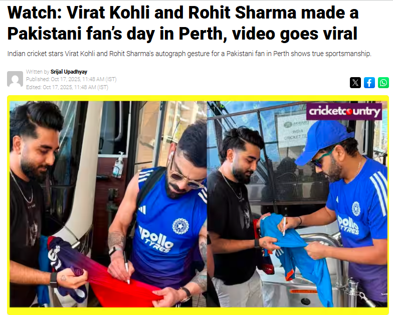 Reports published by NDTV and Cricket Country on 16, 17 Oct 2025