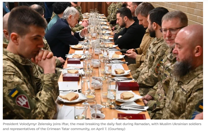 یوکرین کے صدر ولودومیر زیلنسکی ماہ رمضان المبارک میں مسلمان فوجیوں کے ساتھ افطار کر رہے ہیں۔