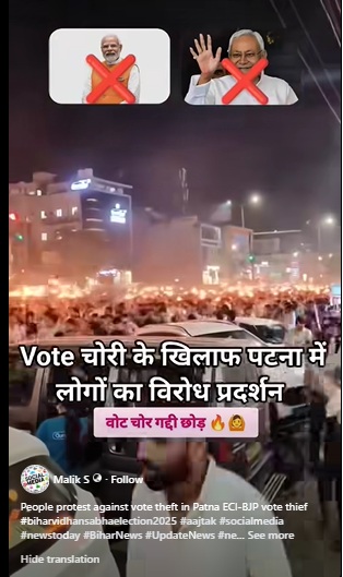 A video circulating on social media shows residents of Patna holding a massive torchlight protest against the BJP and the Election Commission, alleging vote theft in the recently concluded Bihar Assembly elections that resulted in a sweeping NDA victory.