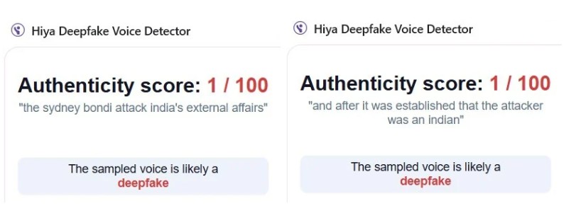 - Hiya Deepfake Voice Detector labeled the audio as likely deepfake