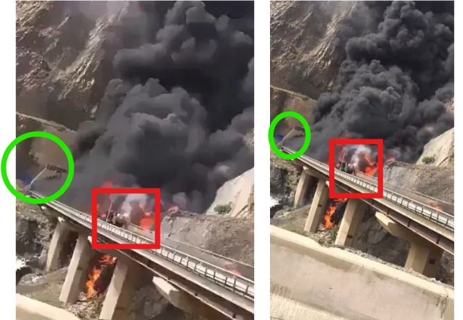 Saudi news outlet Okaz also reported on the same 2017 incident, detailing how a tanker carrying 32 tonnes of diesel overturned on a bridge near the ninth tunnel on the Shaar mountain pass linking Abha.