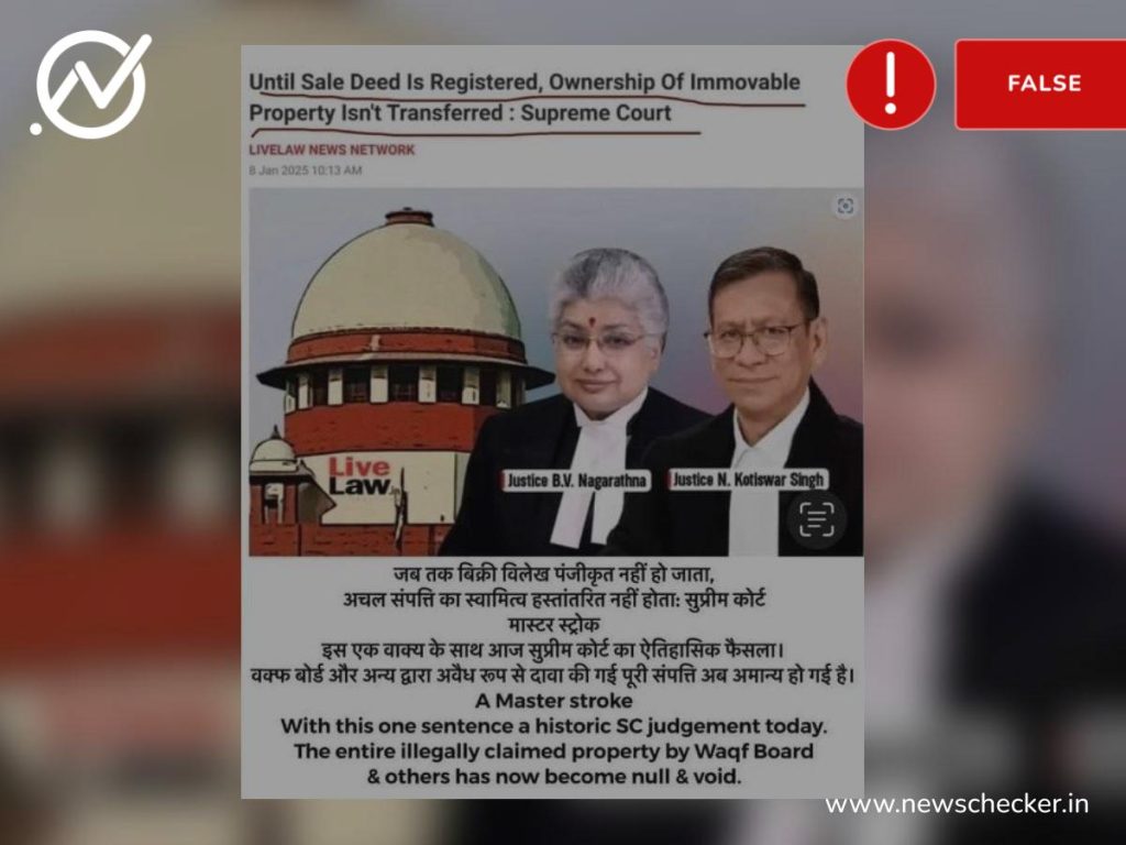 Several social media users shared a viral graphic, comprising a screenshot of an article by online legal news portal LiveLaw, hailing a purported Supreme Court (SC) judgment that has rendered all properties “illegally” claimed by the Waqf board and similar institutions as invalid. Newschecker found that the case mentioned in the viral claim has no link to Waqf properties or its related laws and that it pertains to a private dispute.