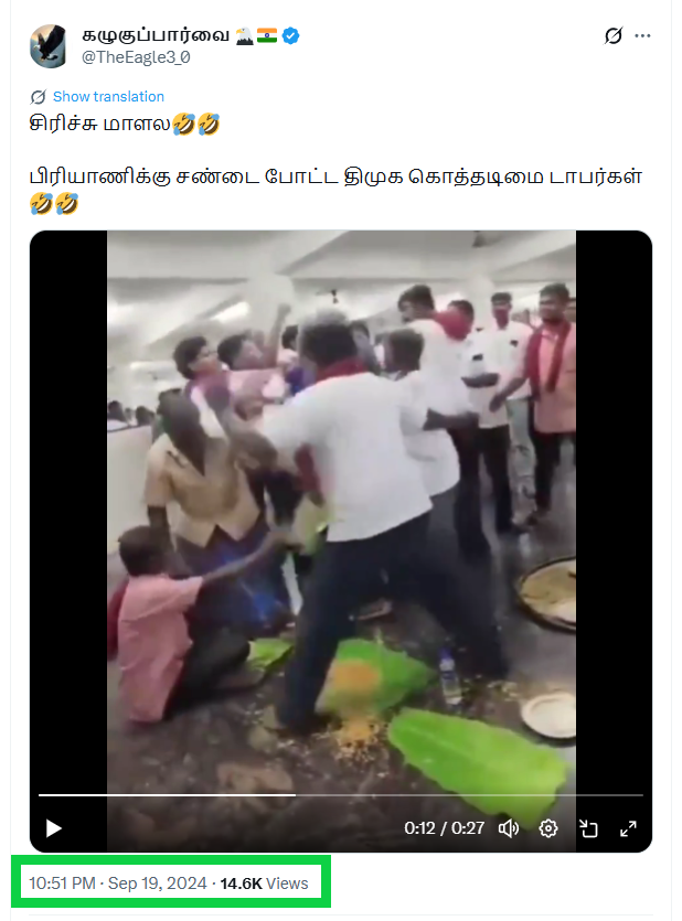 திருவண்ணாமலை இளைஞரணி மாநாட்டில் பிரியாணிக்காக திமுகவினர் அடிதடியில் ஈடுபட்டதாக பரவும் வீடியோ தகவல் தவறானதாகும்.