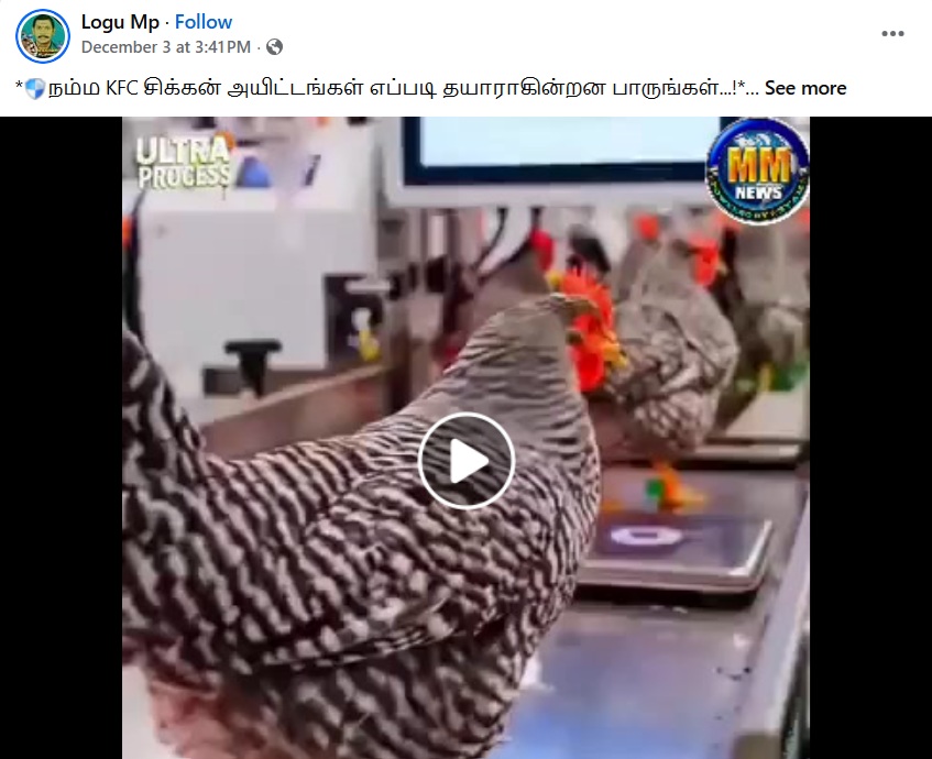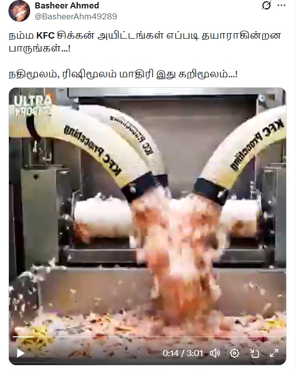 KFC சிக்கன் தயாரிக்கப்படும் முறை என்பதாக வீடியோ ஒன்று சமூக வலைத்தளங்களில் பரவி வருகிறது.